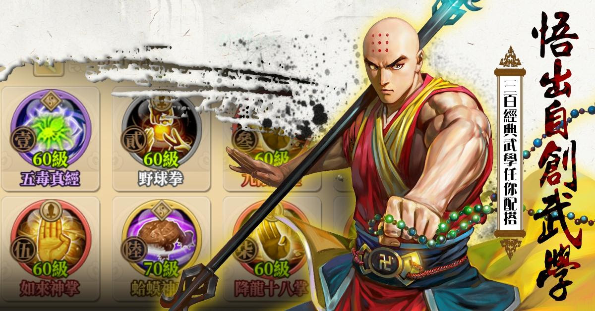 江湖流傳著上百種武學、絕學、步法及內功心法秘笈,由各種招式配搭出千變萬化的套路,令大俠之間的對戰更鬥智鬥力。各大俠更可以其他武學,悟出一套屬於你的自創武學,殺對方一個措手不及!