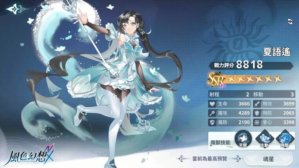 遊戲中「夏語遙」夾帶多樣技能,包括強大的出場技能「源自夏的聲音」,被召喚登場時可增加附近友軍的行動點,達到全隊一回合行動多次的逆天效果;而天賦技能「夏風之歌」於每回合結束,可自動為隊友回復生命及提升魔法攻擊,解放隊伍輔助職業的位置;主動技能「洗碗精勇者」針對範圍內敵人可造成傷害,並附加降低魔防的「泡沫」狀態。