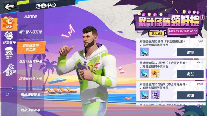 此外,端午節即將到來,《全明星街球派對》也準備應景的「粽子」與「甜甜圈」背飾,節日氛圍滿點,讓你一出場就自帶節慶感!還有感恩儲值禮活動,小額儲值回饋更多虛寶好禮。穿上專屬戰袍、踩上個性球鞋,這個夏天,讓你的風格從頭到腳全面覺醒!