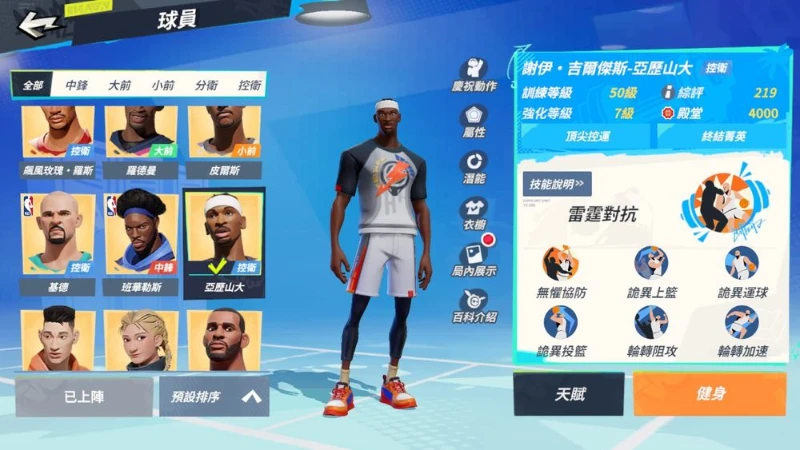 而說到場上最吸睛的焦點,絕對少不了本次強勢登場的 SGA!隨著亞歷山大正式加入《全明星街球派對》,其專屬球衣【亞歷山大 24-25 雷霆賽季球衣】也同步上線。這款球衣不僅重現現實賽場上的雷霆經典藍橘配色,還具備強化中投與彈跳的加成屬性,對於想完美發揮 SGA 操作手感的街球手來說,絕對是不可或缺的實戰穿搭!