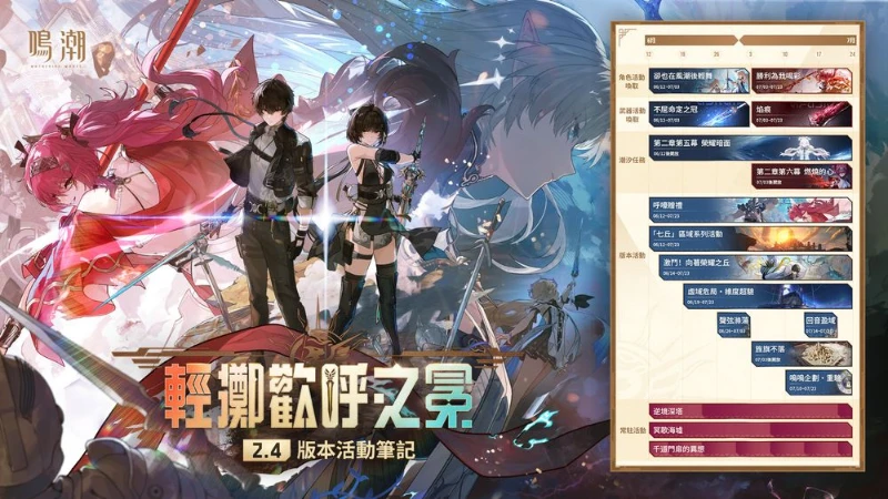 由 NIJIGEN 代理發行、庫洛遊戲(KURO GAMES)打造的開放世界動作遊戲《鳴潮 Wuthering Waves》宣布,2.4 版本「輕擲歡呼之冕」將於今日維護後正式開啟,推出 5 星共鳴者「卡提希婭」以及全新區域「七丘」等內容。