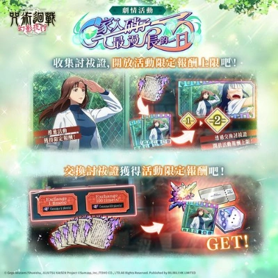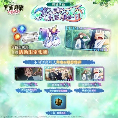官方表示,這是一個可以觀看以家入硝子為中心的限定劇情,並獲得各種遊戲內報酬的活動。推進任務進度,即可獲得活動限定 SSR 迴想殘滓 [歌姬式紓壓法]。