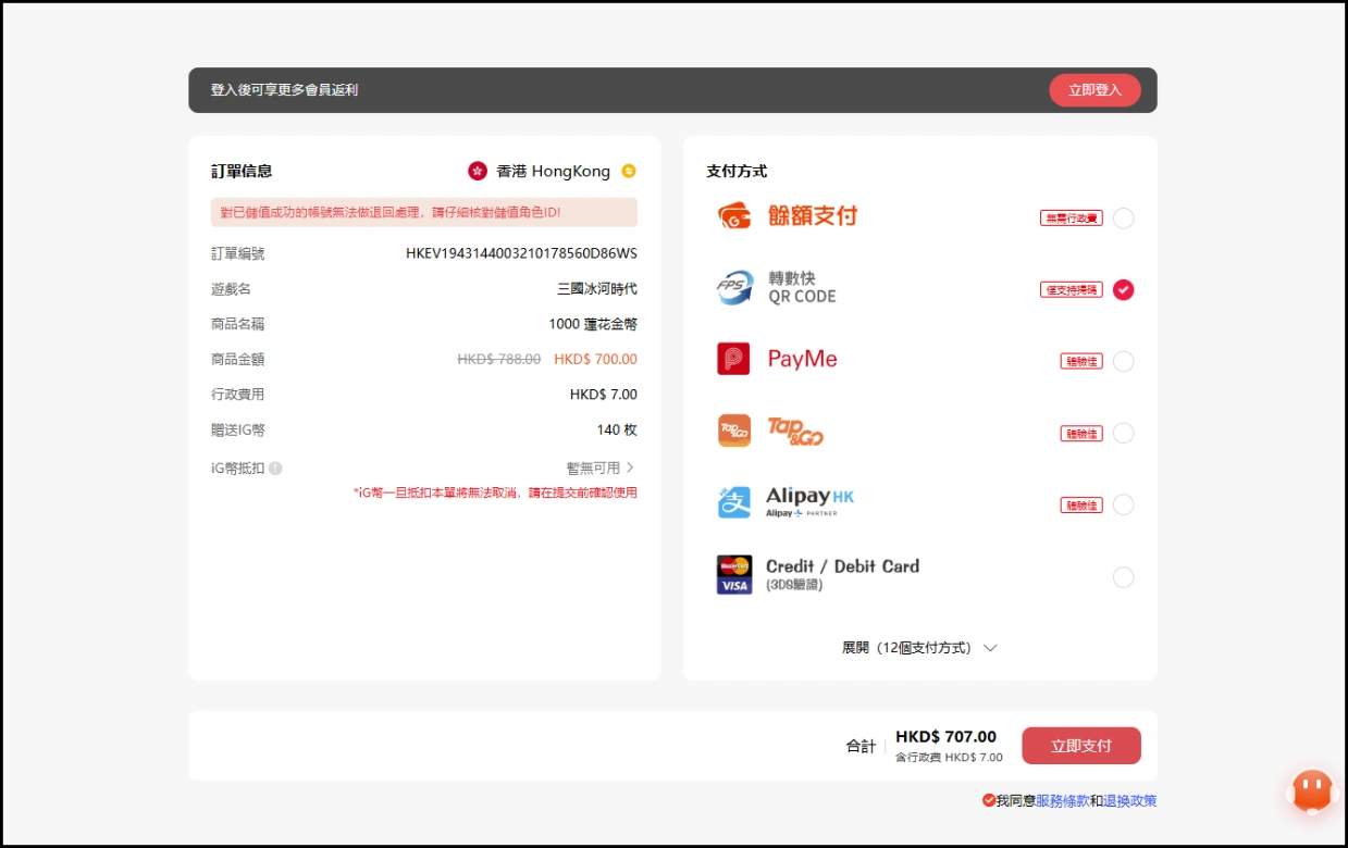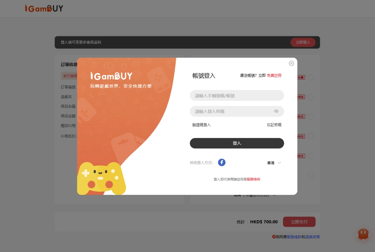 4. 點擊任意付款渠道,登入或註冊「iGameBUY會員帳號」