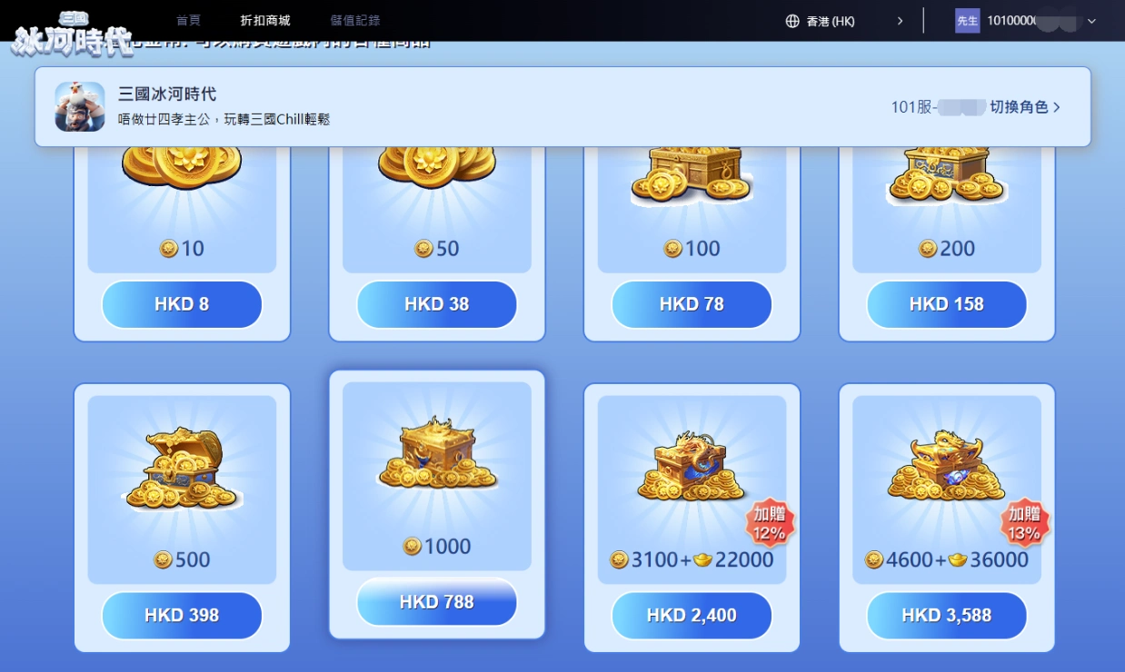 若餘額不足,可在iGameBUY會員中心【餘額增值】; 餘額增值教程