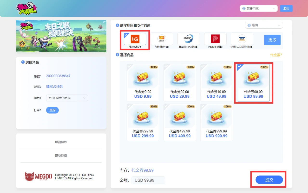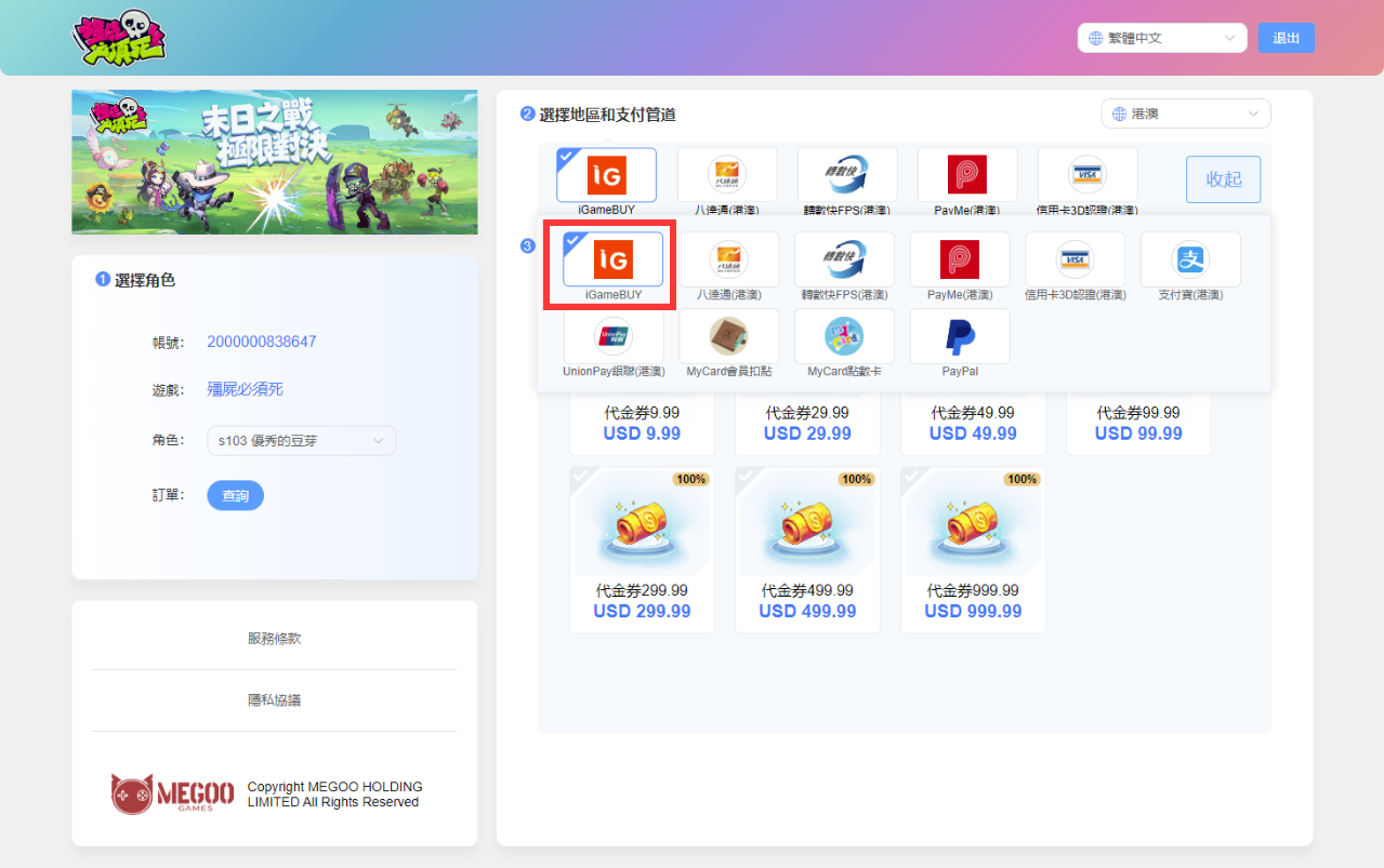 「殭屍必須死-塔防對決」官網儲值 iGameBUY會員支付流程