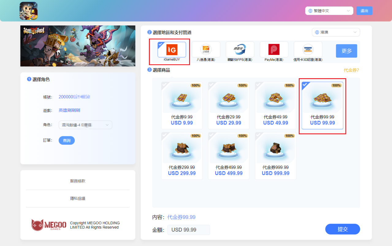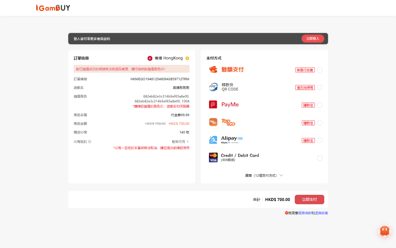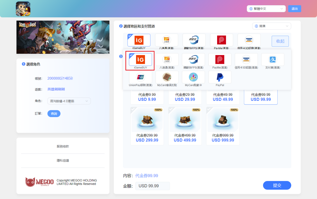 「英雄刷刷刷」官網儲值 iGameBUY會員支付流程