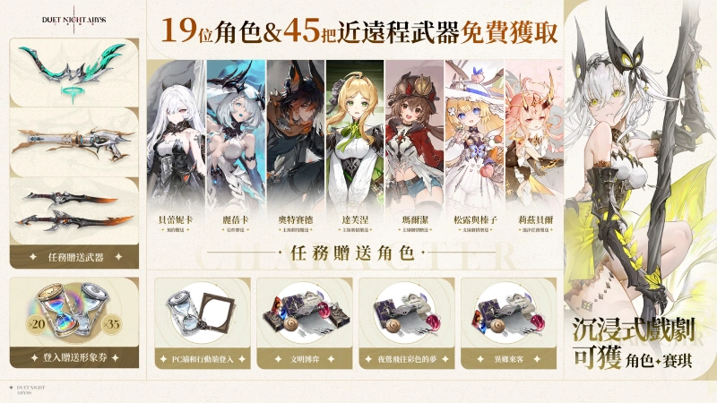 全新商業化體系已正式上線:角色與武器全面取消星級與卡池設定,玩家可透過副本免費刷取所需資源,且過程不受體力限制。戰鬥設計支援近戰與遠程武器的靈活切換,享受酣暢淋漓的戰鬥體驗。