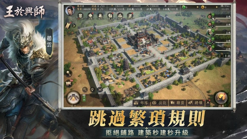 在《王於興師》的世界裡,你的部隊可自由馳騁,無需繁瑣格子鋪路,遭遇敵人即可即刻開戰,主城內所有建築建造與升級皆可瞬間完成,無需等待煎熬,只有瞬息萬變的戰局與即點即戰的爽快體驗!