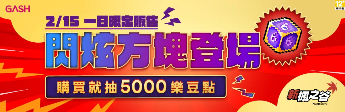 【活動內容】:於活動期間有購買「閃炫方塊」的帳號, 將依購買紀錄於活動結束後抽獎, 共計抽出 GASH 5,000點 (20名)