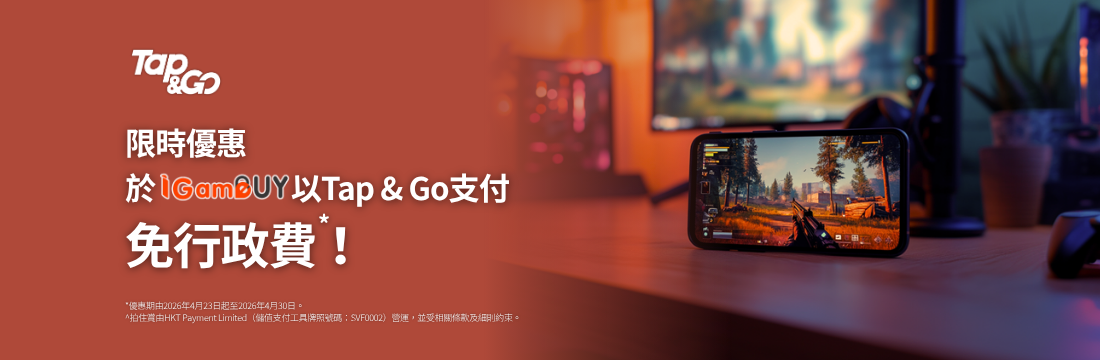 活動期間於iGameBUY商城購買任意商品或iGameBUY會員支付任意合作遊戲,使用 Tap&Go拍住賞 付款皆可獲免行政費用